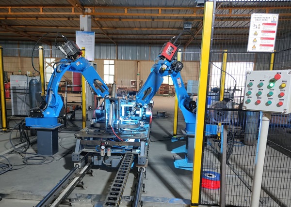 三輪車車架智能焊接設備。針對焊接用工難,焊接環境對人身體損害大、人工焊接質量不穩定等問題,研發了基于多機同步模式的電動三輪車智能焊接系統,實現焊接工藝的統一化、數字化、標準化,有效提高焊接質量和焊接效率,降低企業用工成本,解決制約企業發展的重大問題。