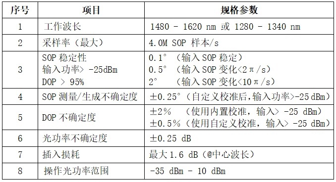 產品應用:接收器的偏振靈敏度分析、系統的SOP及DOP監測、偏振態產生及穩定、傳感系統特性測試、100G系統偏振特性測試